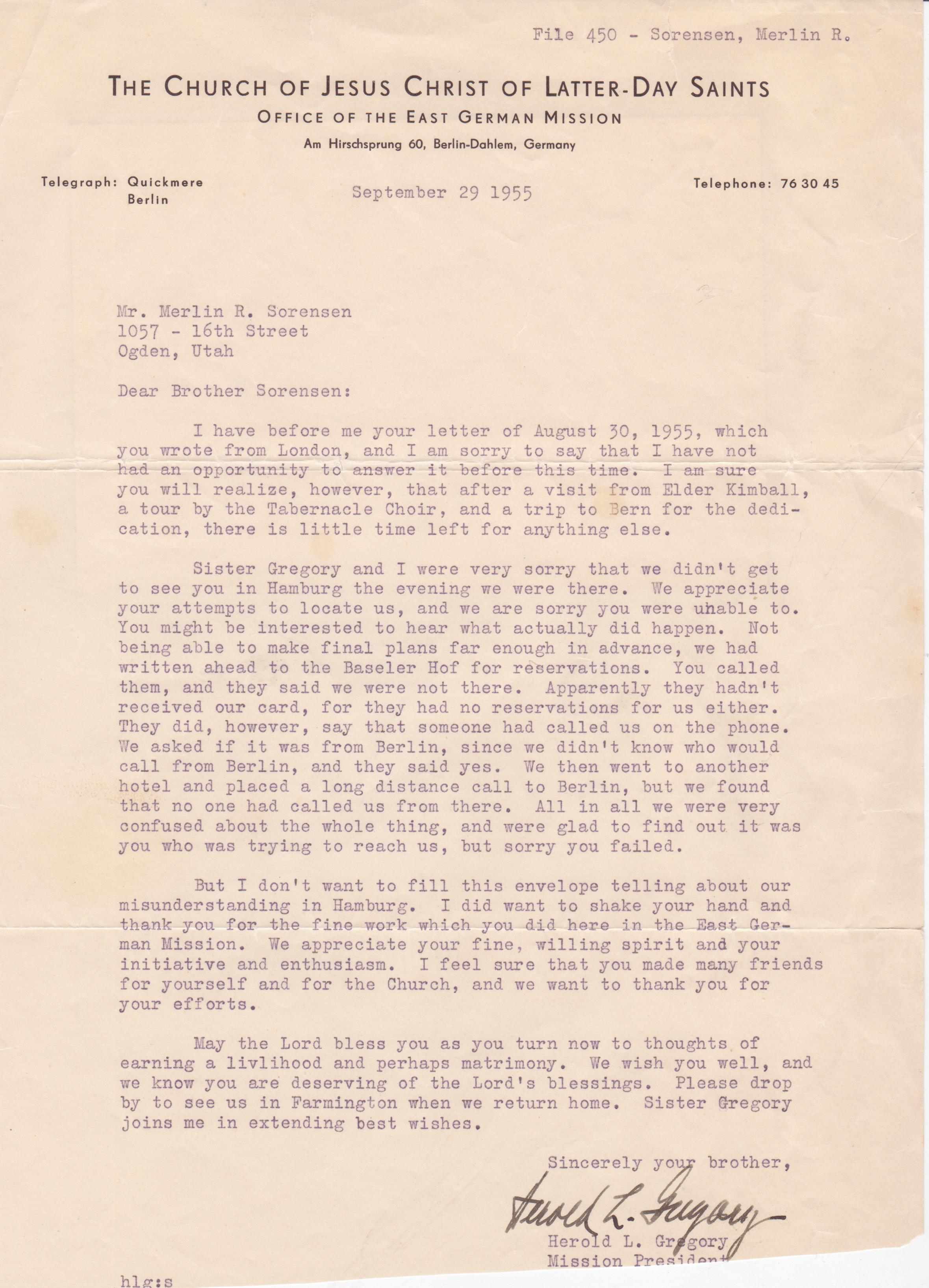 I haven’t seen Parley Belnap yet, but when we get to Berlin on the 16th of March 1953, I will see him at the Conference.